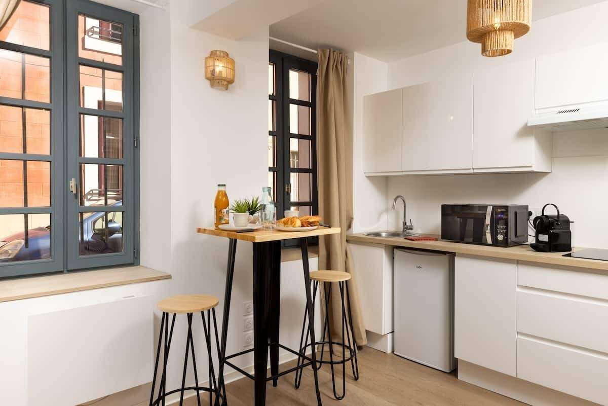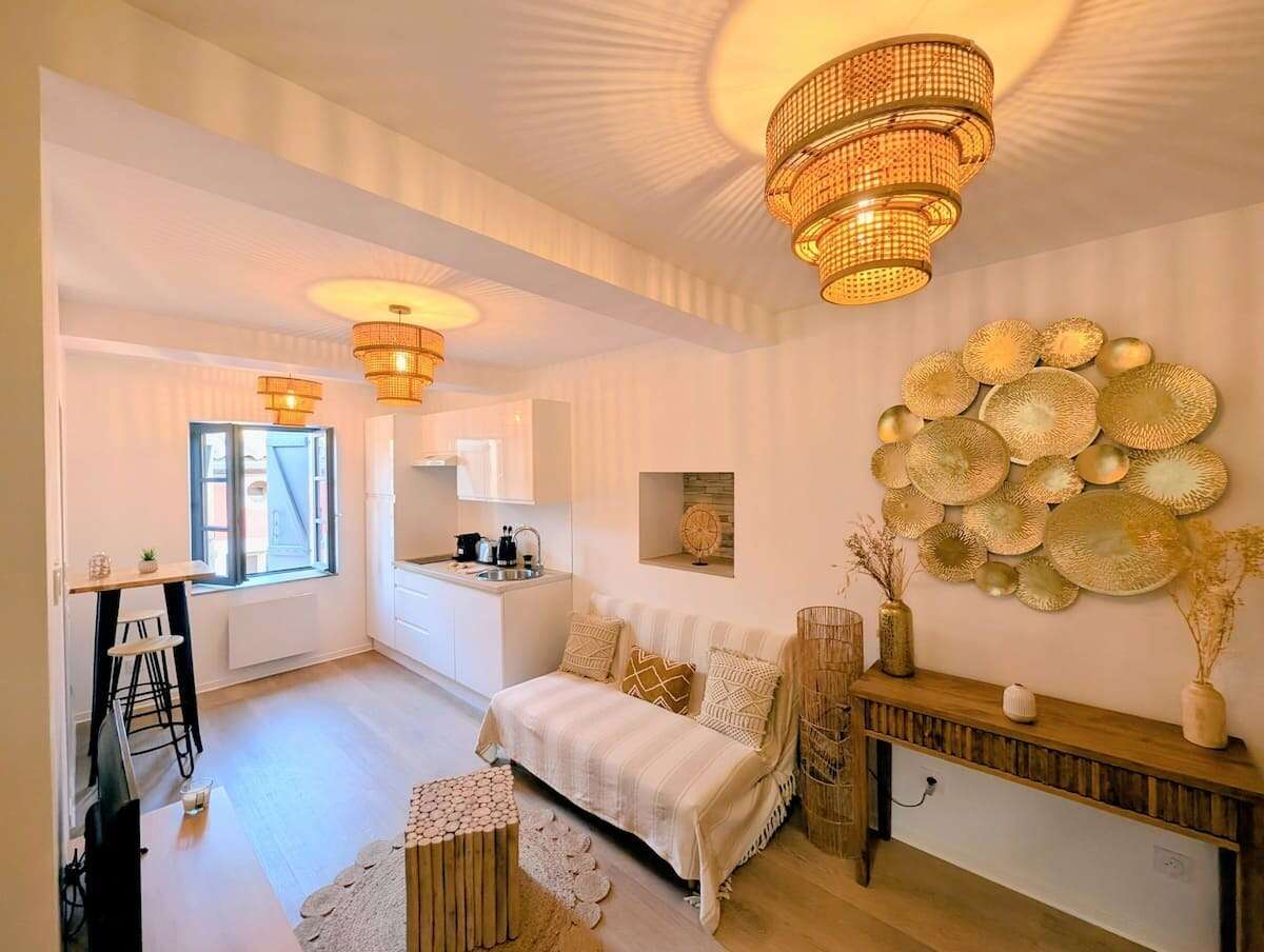 Bienvenue au Capoine 3, un charmant T2 entièrement rénové, situé en plein cœur de la Bastide de Carcassonne, au deuxième étage d’un petit immeuble calme et refait à neuf.